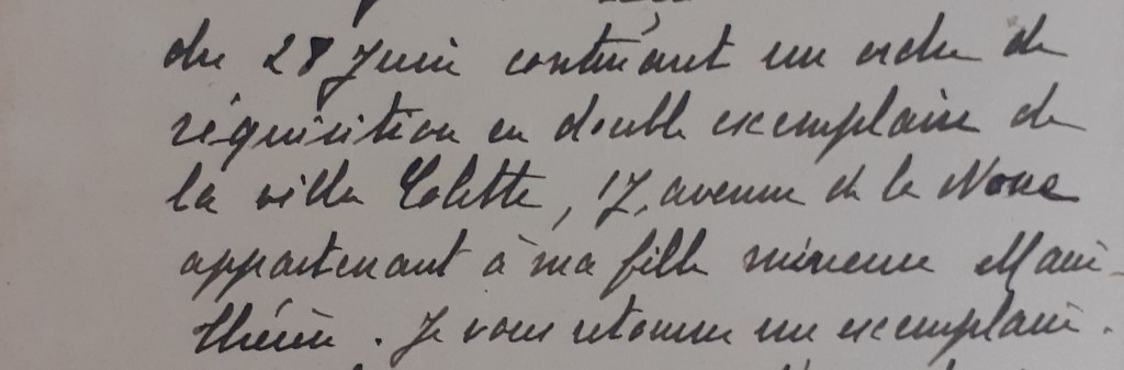 Pour la villa Colette, on trouve également des courriers du propriétaire de la villa, le Docteur Jouveau-Dubreuil, dans lesquels on apprend que la villa appartient en réalité à sa fille mineure :